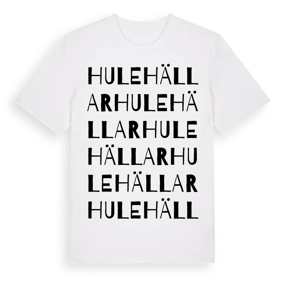Hulehällar ordlek t-shirt är inspirerad av Hulehällar i Gotlands län, Sverige. Tröjan är designad för dig som har en speciell koppling till platsen – oavsett om du bor här, har rötterna här eller bara älskar Hulehällar.