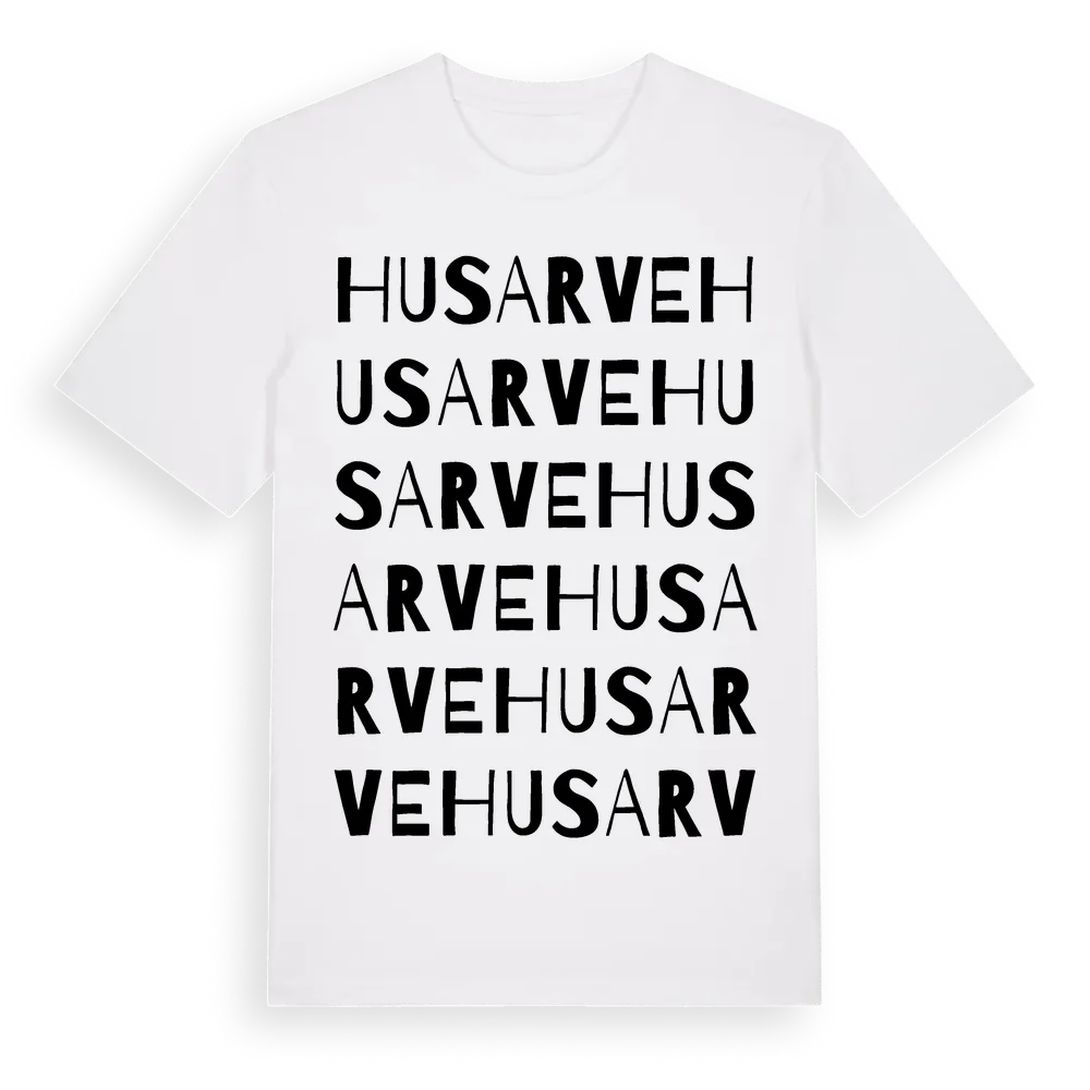 Husarve ordlek t-shirt är inspirerad av Husarve i Gotlands län, Sverige. Tröjan är designad för dig som har en speciell koppling till platsen – oavsett om du bor här, har rötterna här eller bara älskar Husarve.