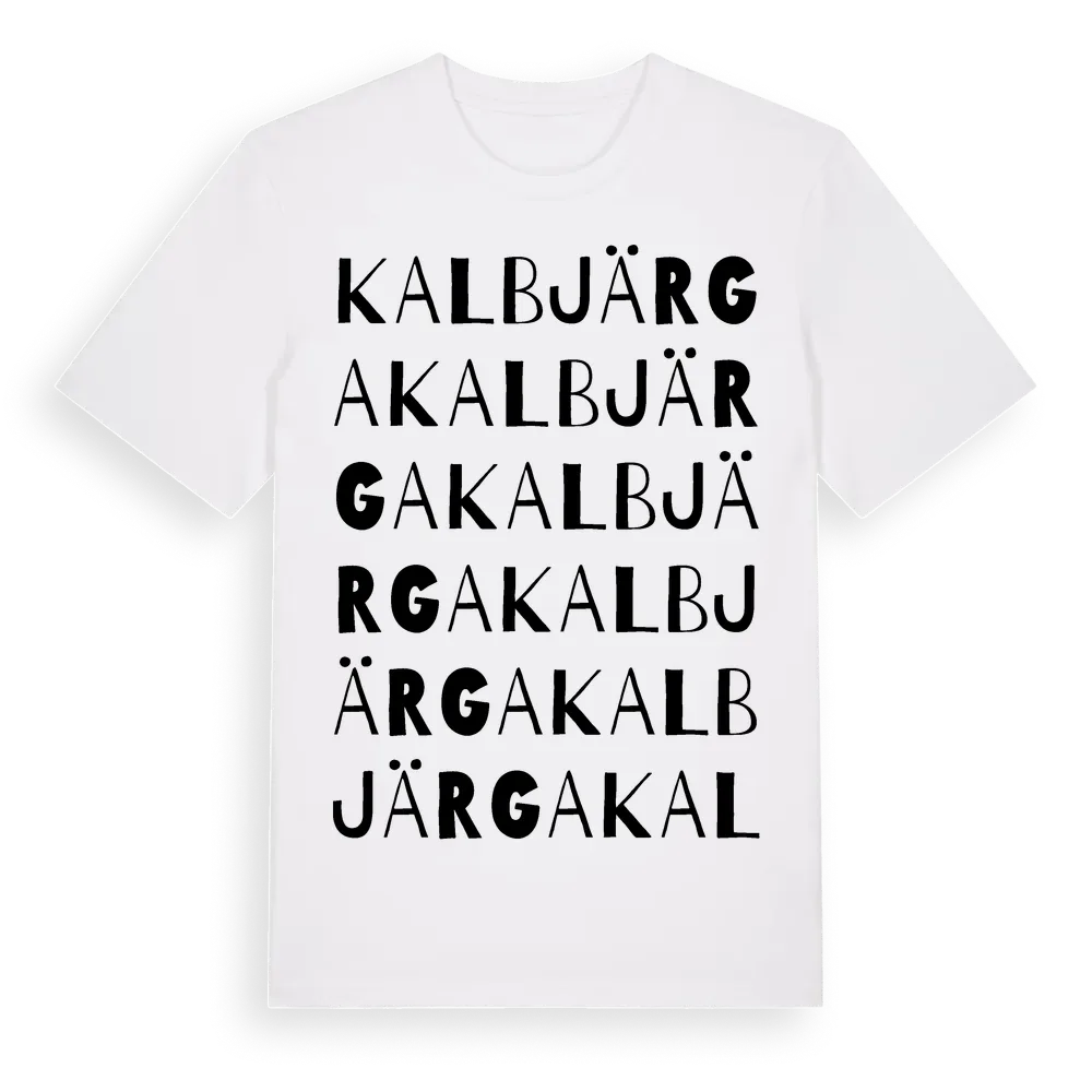 Kalbjärga ordlek t-shirt är inspirerad av Kalbjärga i Gotlands län, Sverige. Tröjan är designad för dig som har en speciell koppling till platsen – oavsett om du bor här, har rötterna här eller bara älskar Kalbjärga.