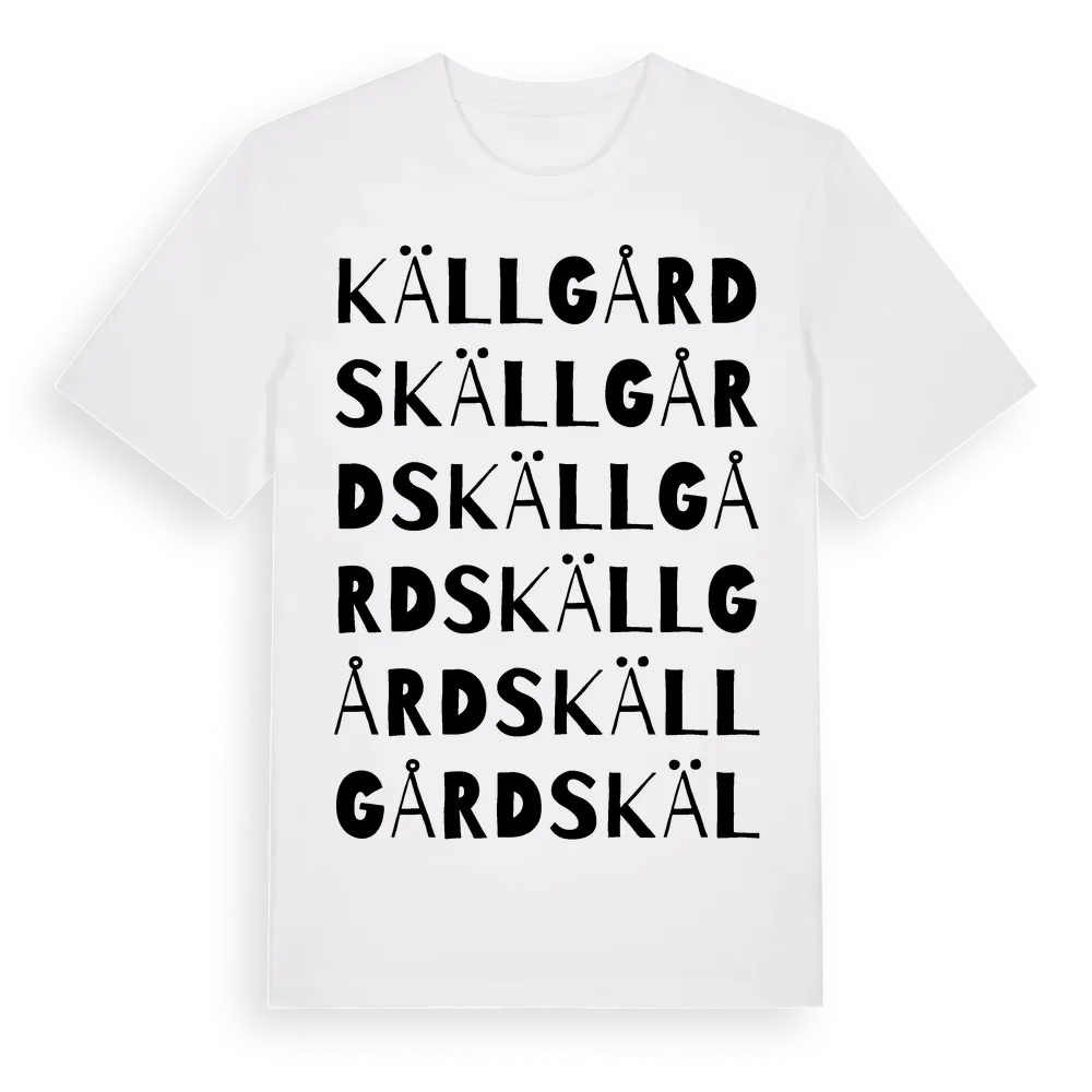 Källgårds ordlek t-shirt är inspirerad av Källgårds i Gotlands län, Sverige. Tröjan är designad för dig som har en speciell koppling till platsen – oavsett om du bor här, har rötterna här eller bara älskar Källgårds.