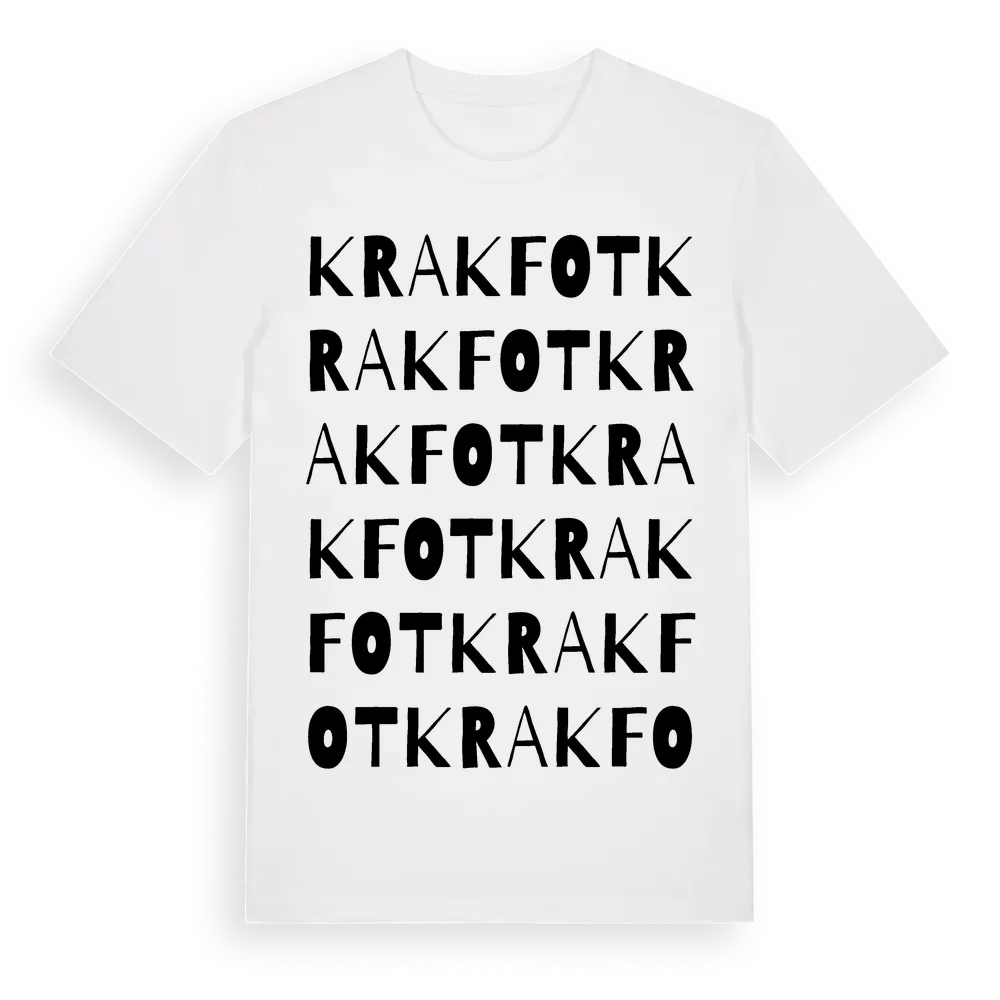 Krakfot ordlek t-shirt är inspirerad av Krakfot i Gotlands län, Sverige. Tröjan är designad för dig som har en speciell koppling till platsen – oavsett om du bor här, har rötterna här eller bara älskar Krakfot.
