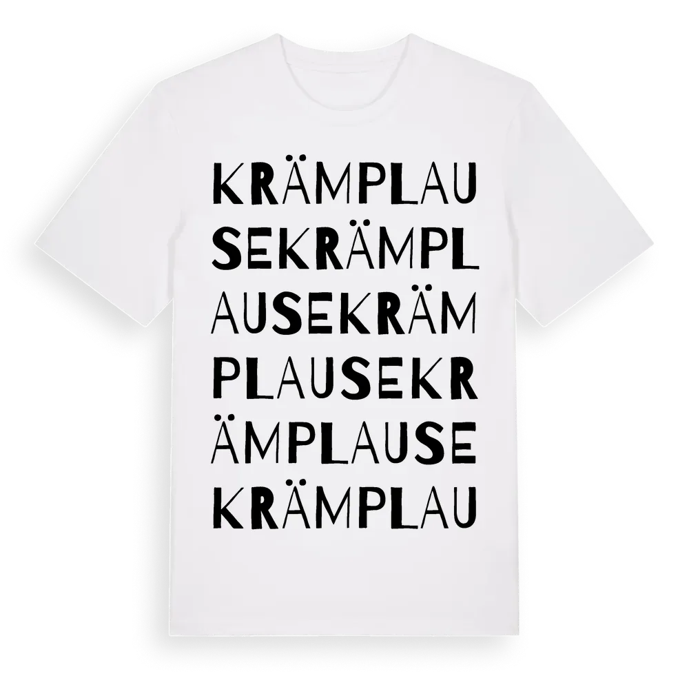 Krämplause ordlek t-shirt är inspirerad av Krämplause i Gotlands län, Sverige. Tröjan är designad för dig som har en speciell koppling till platsen – oavsett om du bor här, har rötterna här eller bara älskar Krämplause.
