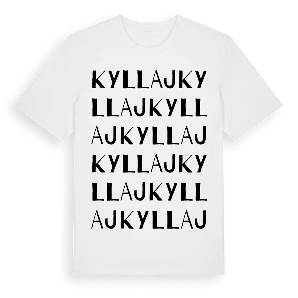 Kyllaj ordlek t-shirt är inspirerad av byn Kyllaj i Gotlands län, Sverige. Tröjan är designad för dig som har en speciell koppling till platsen – oavsett om du bor här, har rötterna här eller bara älskar Kyllaj.