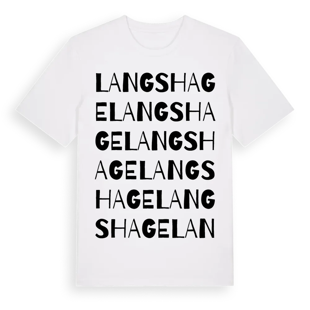 Langs Hage ordlek t-shirt är inspirerad av Langs Hage i Gotlands län, Sverige. Tröjan är designad för dig som har en speciell koppling till platsen – oavsett om du bor här, har rötterna här eller bara älskar Langs Hage.