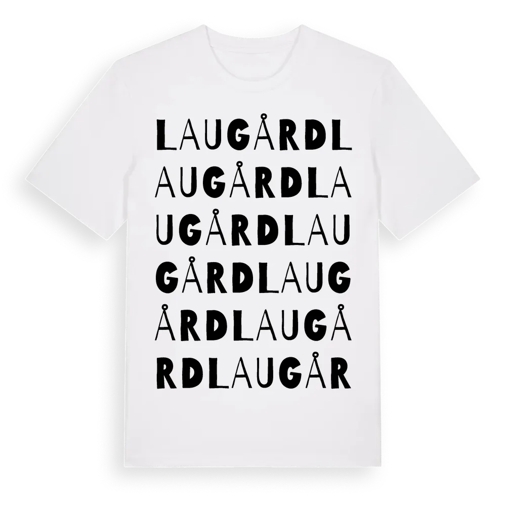 Lau Gård ordlek t-shirt är inspirerad av Lau Gård i Gotlands län, Sverige. Tröjan är designad för dig som har en speciell koppling till platsen – oavsett om du bor här, har rötterna här eller bara älskar Lau Gård.