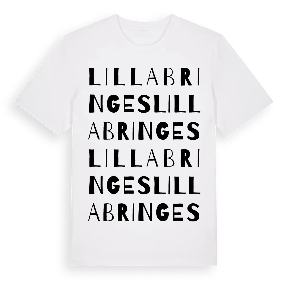 Lilla Bringes ordlek t-shirt är inspirerad av Lilla Bringes i Gotlands län, Sverige. Tröjan är designad för dig som har en speciell koppling till platsen – oavsett om du bor här, har rötterna här eller bara älskar Lilla Bringes.