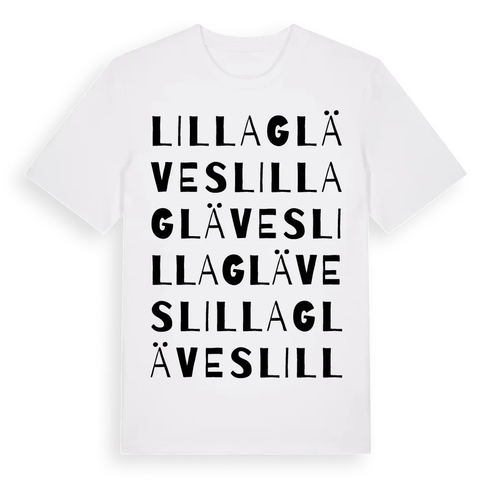 En ordlek byggd på Lilla Glävess namn. Subtilt och klurig – ett motiv som bara de som verkligen känner platsen fullt ut förstår. Premium bomull, unisex – från Lilla Gläves i Gotlands län.