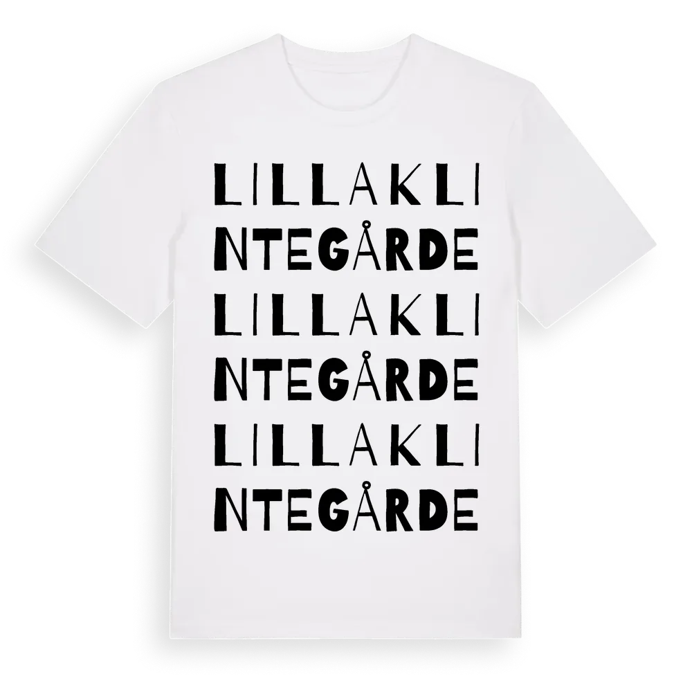 Lilla Klintegårde ordlek t-shirt är inspirerad av Lilla Klintegårde i Gotlands län, Sverige. Tröjan är designad för dig som har en speciell koppling till platsen – oavsett om du bor här, har rötterna här eller bara älskar Lilla Klintegårde.