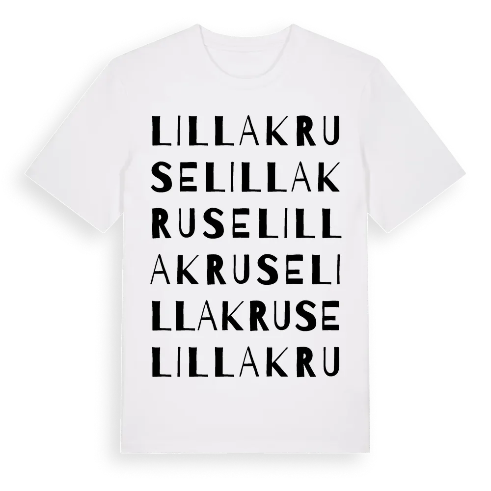 Lilla Kruse ordlek t-shirt är inspirerad av Lilla Kruse i Gotlands län, Sverige. Tröjan är designad för dig som har en speciell koppling till platsen – oavsett om du bor här, har rötterna här eller bara älskar Lilla Kruse.