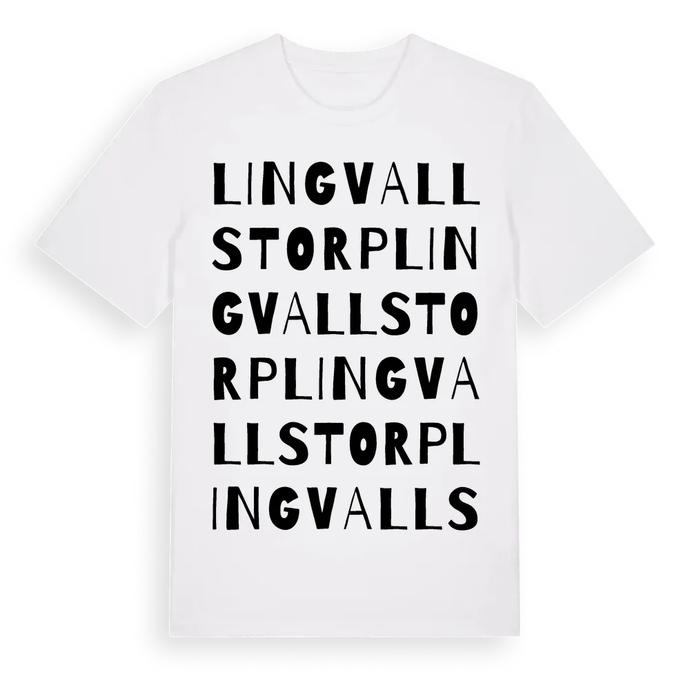 Lingvallstorp ordlek t-shirt är inspirerad av Lingvallstorp i Gotlands län, Sverige. Tröjan är designad för dig som har en speciell koppling till platsen – oavsett om du bor här, har rötterna här eller bara älskar Lingvallstorp.