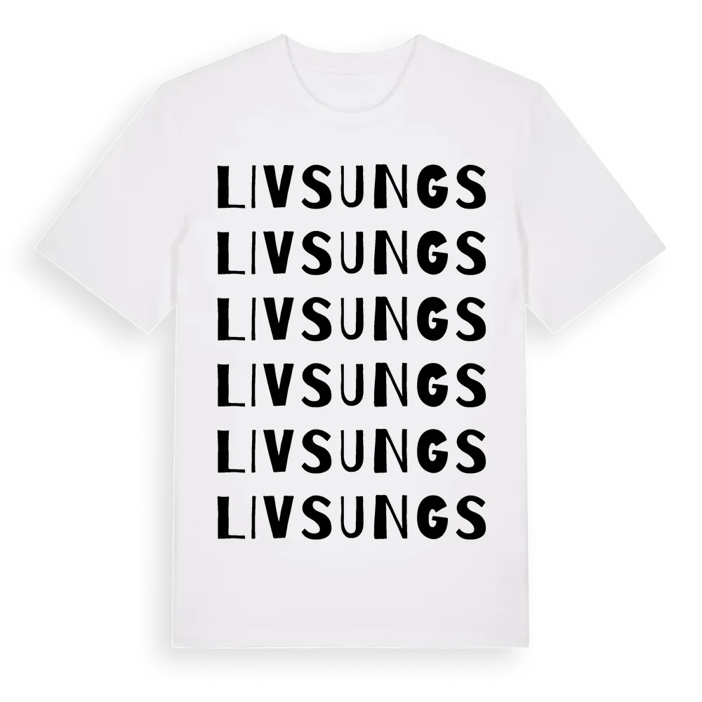 En ordlek byggd på Livsungss namn. Subtilt och klurig – ett motiv som bara de som verkligen känner platsen fullt ut förstår. Premium bomull, unisex – från Livsungs i Gotlands län.