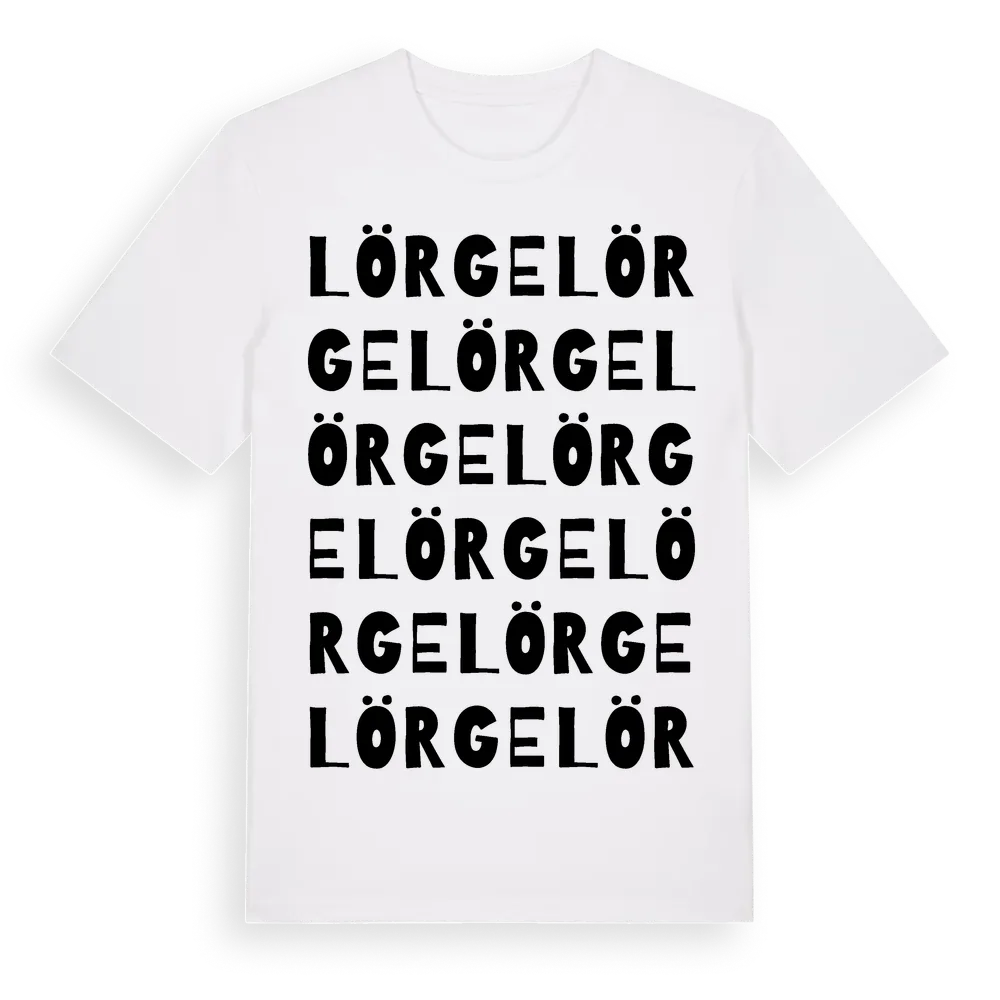 Lörge ordlek t-shirt är inspirerad av Lörge i Gotlands län, Sverige. Tröjan är designad för dig som har en speciell koppling till platsen – oavsett om du bor här, har rötterna här eller bara älskar Lörge.