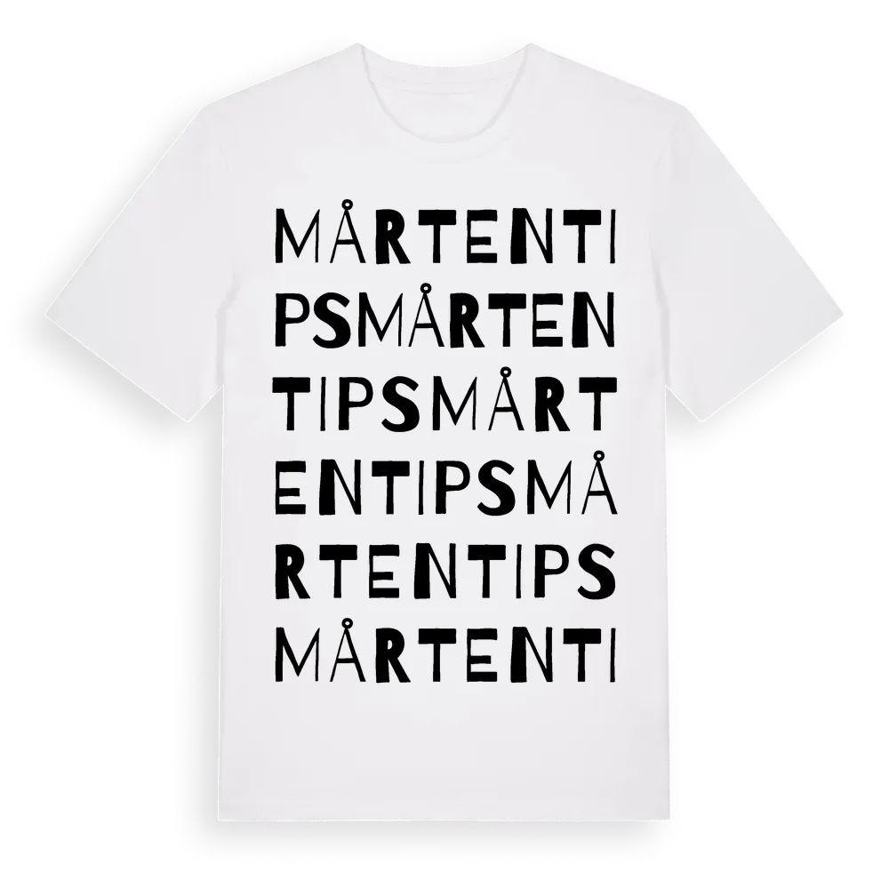 Mårten Tips ordlek t-shirt är inspirerad av Mårten Tips i Gotlands län, Sverige. Tröjan är designad för dig som har en speciell koppling till platsen – oavsett om du bor här, har rötterna här eller bara älskar Mårten Tips.