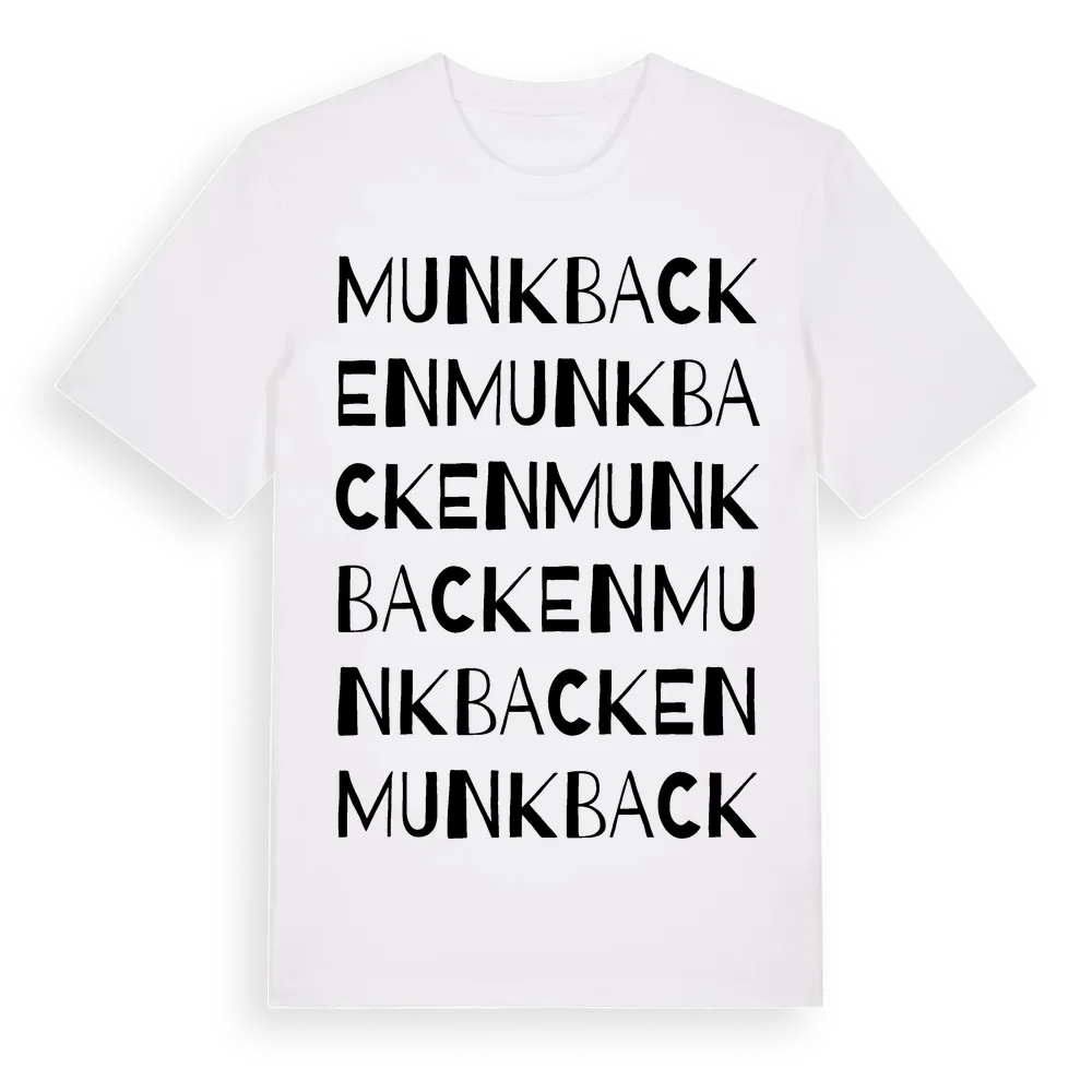 Munkbacken ordlek t-shirt är inspirerad av Munkbacken i Gotlands län, Sverige. Tröjan är designad för dig som har en speciell koppling till platsen – oavsett om du bor här, har rötterna här eller bara älskar Munkbacken.