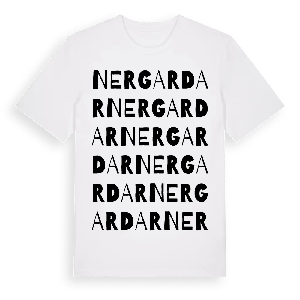 Nergardar ordlek t-shirt är inspirerad av Nergardar i Gotlands län, Sverige. Tröjan är designad för dig som har en speciell koppling till platsen – oavsett om du bor här, har rötterna här eller bara älskar Nergardar.