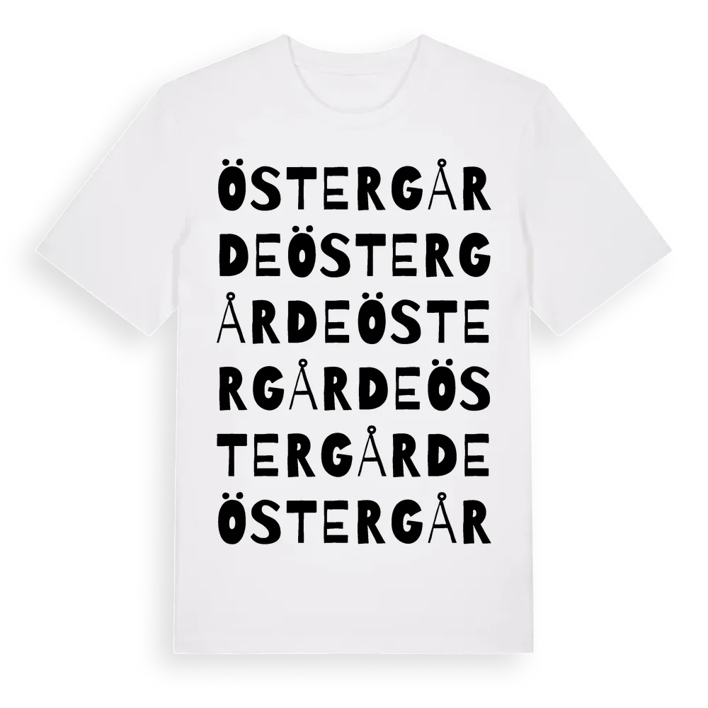 Östergårde ordlek t-shirt är inspirerad av Östergårde i Gotlands län, Sverige. Tröjan är designad för dig som har en speciell koppling till platsen – oavsett om du bor här, har rötterna här eller bara älskar Östergårde.