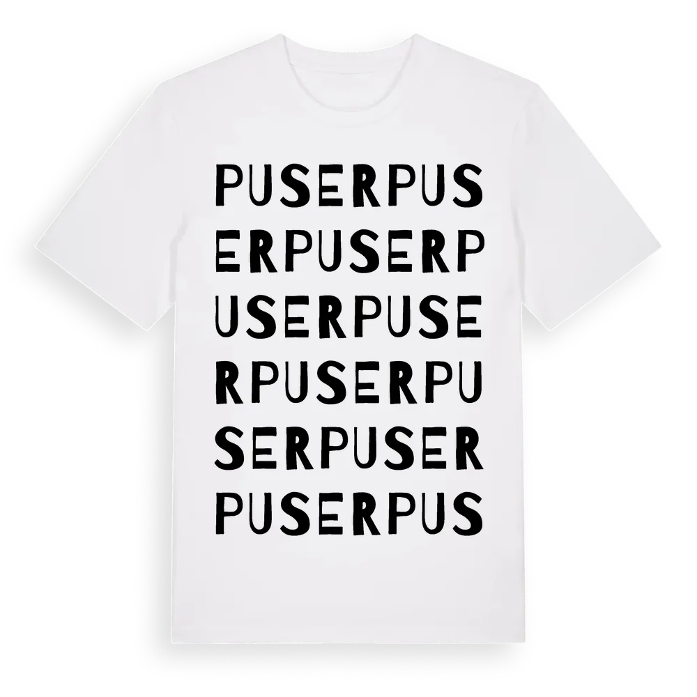 Puser ordlek t-shirt är inspirerad av Puser i Gotlands län, Sverige. Tröjan är designad för dig som har en speciell koppling till platsen – oavsett om du bor här, har rötterna här eller bara älskar Puser.