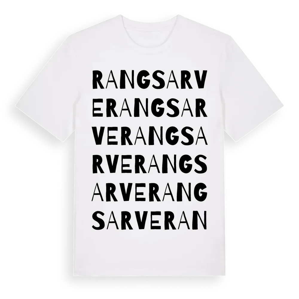 Rangsarve ordlek t-shirt är inspirerad av Rangsarve i Gotlands län, Sverige. Tröjan är designad för dig som har en speciell koppling till platsen – oavsett om du bor här, har rötterna här eller bara älskar Rangsarve.