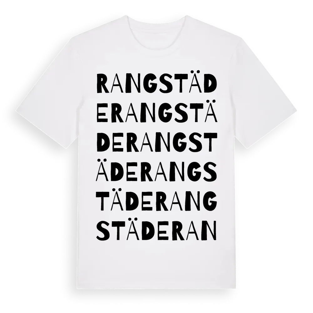 Rangstäde ordlek t-shirt är inspirerad av Rangstäde i Gotlands län, Sverige. Tröjan är designad för dig som har en speciell koppling till platsen – oavsett om du bor här, har rötterna här eller bara älskar Rangstäde.