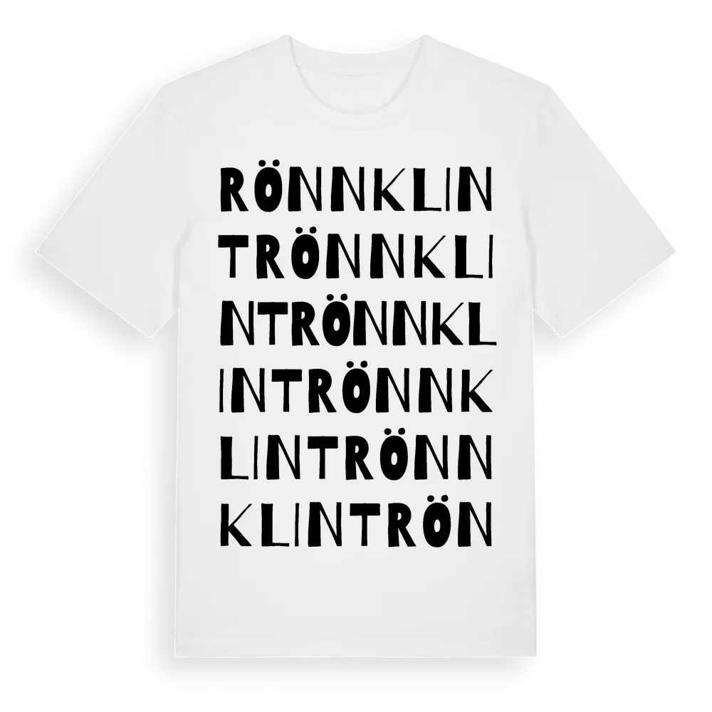 En ordlek byggd på Rönnklints namn. Subtilt och klurig – ett motiv som bara de som verkligen känner platsen fullt ut förstår. Premium bomull, unisex – från Rönnklint i Gotlands län.