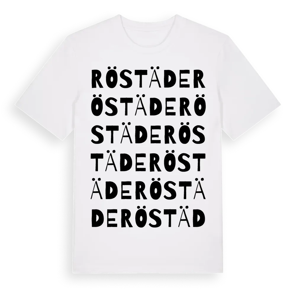 Röstäde ordlek t-shirt är inspirerad av Röstäde i Gotlands län, Sverige. Tröjan är designad för dig som har en speciell koppling till platsen – oavsett om du bor här, har rötterna här eller bara älskar Röstäde.