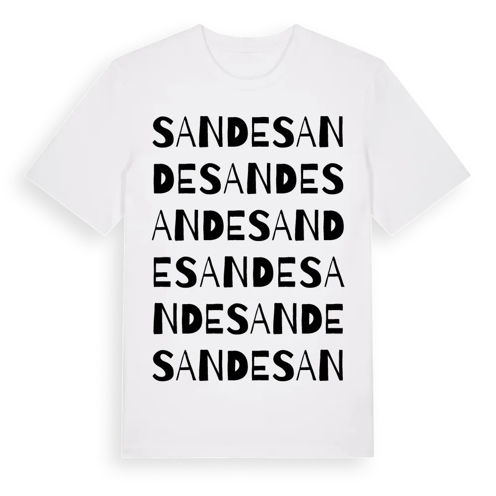 Sande ordlek t-shirt är inspirerad av Sande i Gotlands län, Sverige. Tröjan är designad för dig som har en speciell koppling till platsen – oavsett om du bor här, har rötterna här eller bara älskar Sande.