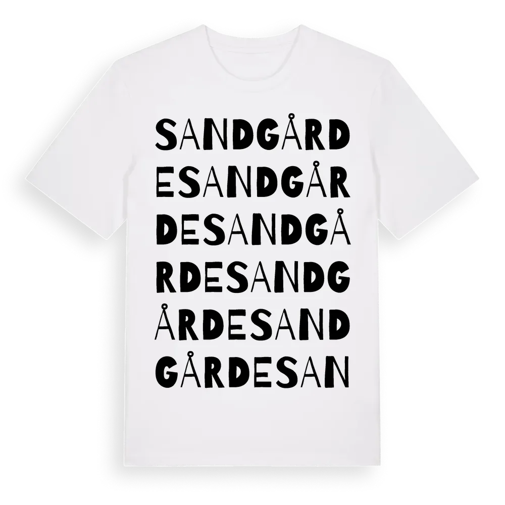 Sandgårde ordlek t-shirt är inspirerad av Sandgårde i Gotlands län, Sverige. Tröjan är designad för dig som har en speciell koppling till platsen – oavsett om du bor här, har rötterna här eller bara älskar Sandgårde.