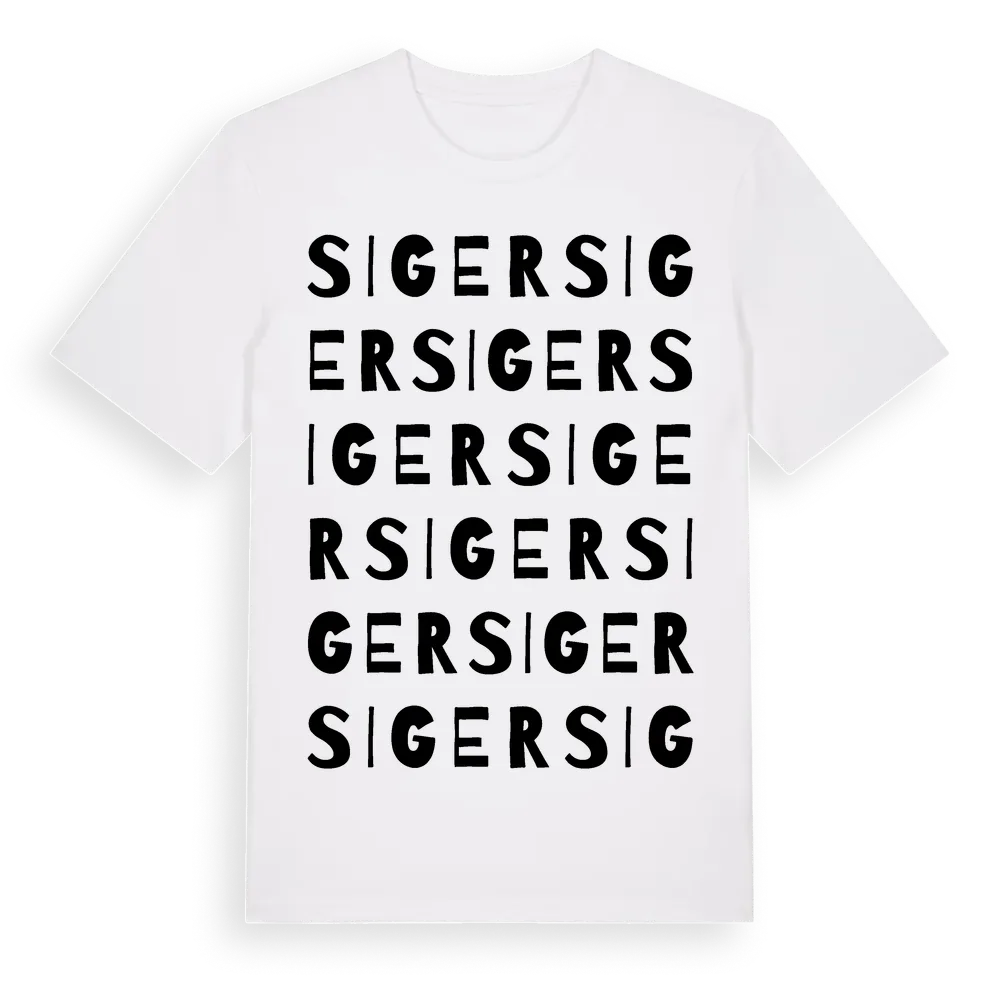 Siger ordlek t-shirt är inspirerad av Siger i Gotlands län, Sverige. Tröjan är designad för dig som har en speciell koppling till platsen – oavsett om du bor här, har rötterna här eller bara älskar Siger.