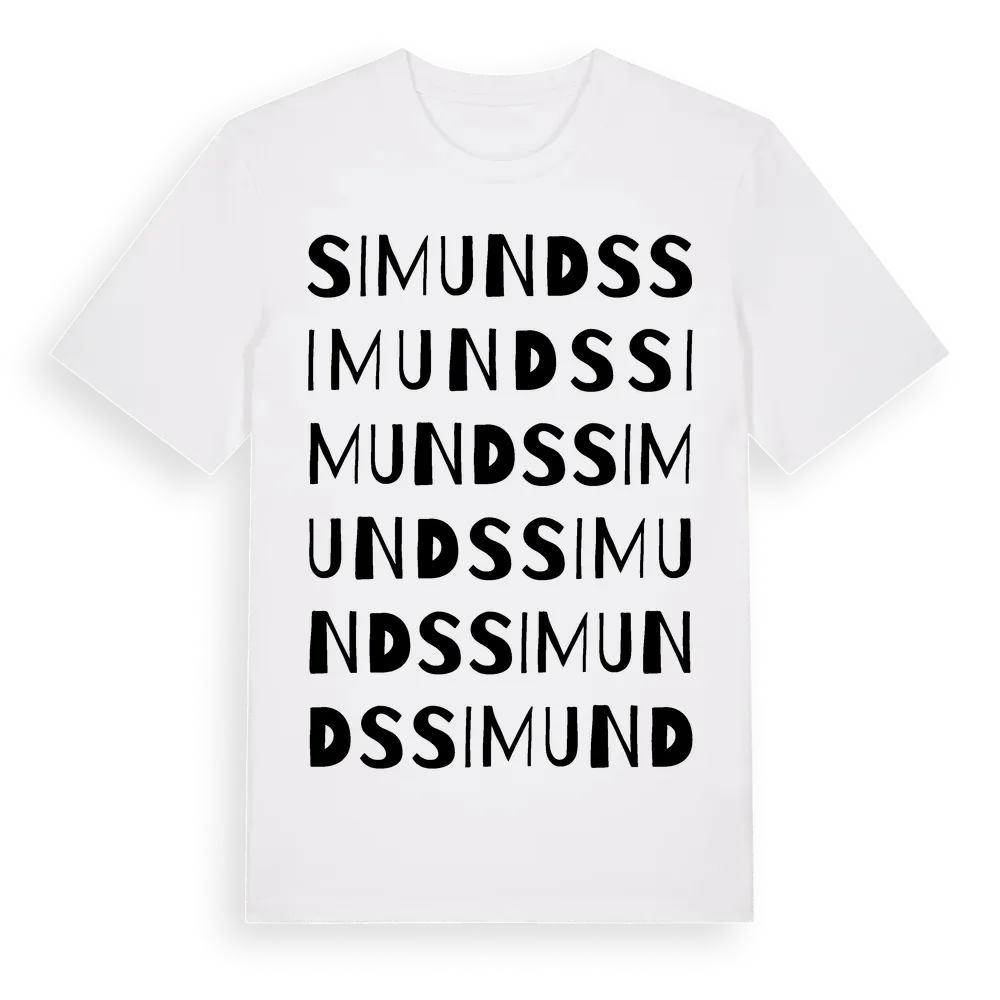 Simunds ordlek t-shirt är inspirerad av Simunds i Gotlands län, Sverige. Tröjan är designad för dig som har en speciell koppling till platsen – oavsett om du bor här, har rötterna här eller bara älskar Simunds.