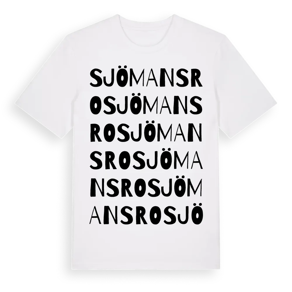 Sjömansro ordlek t-shirt är inspirerad av Sjömansro i Gotlands län, Sverige. Tröjan är designad för dig som har en speciell koppling till platsen – oavsett om du bor här, har rötterna här eller bara älskar Sjömansro.