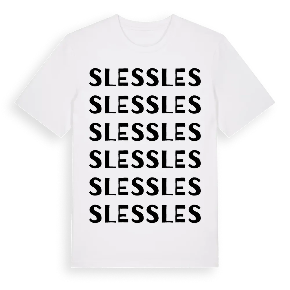 En ordlek byggd på Sless namn. Subtilt och klurig – ett motiv som bara de som verkligen känner platsen fullt ut förstår. Premium bomull, unisex – från Sles i Gotlands län.
