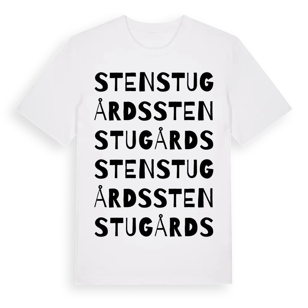 Stenstugårds ordlek t-shirt är inspirerad av Stenstugårds i Gotlands län, Sverige. Tröjan är designad för dig som har en speciell koppling till platsen – oavsett om du bor här, har rötterna här eller bara älskar Stenstugårds.