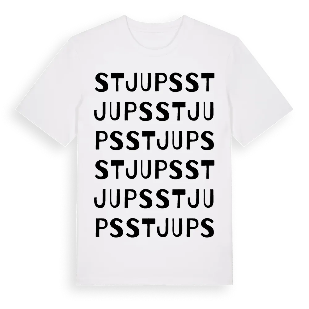 En ordlek byggd på Stjupss namn. Subtilt och klurig – ett motiv som bara de som verkligen känner platsen fullt ut förstår. Premium bomull, unisex – från Stjups i Gotlands län.