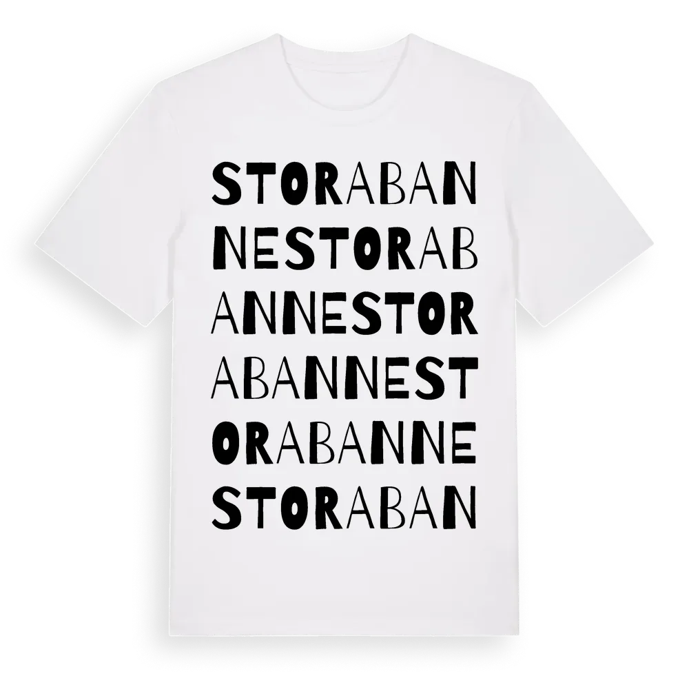 Stora Banne ordlek t-shirt är inspirerad av Stora Banne i Gotlands län, Sverige. Tröjan är designad för dig som har en speciell koppling till platsen – oavsett om du bor här, har rötterna här eller bara älskar Stora Banne.
