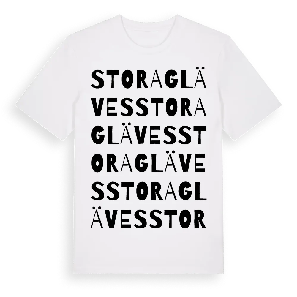 Stora Gläves ordlek t-shirt är inspirerad av Stora Gläves i Gotlands län, Sverige. Tröjan är designad för dig som har en speciell koppling till platsen – oavsett om du bor här, har rötterna här eller bara älskar Stora Gläves.