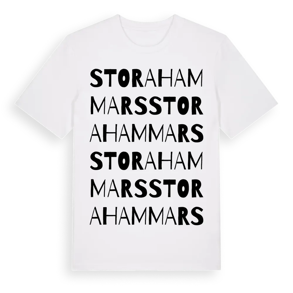 Stora Hammars ordlek t-shirt är inspirerad av Stora Hammars i Gotlands län, Sverige. Tröjan är designad för dig som har en speciell koppling till platsen – oavsett om du bor här, har rötterna här eller bara älskar Stora Hammars.