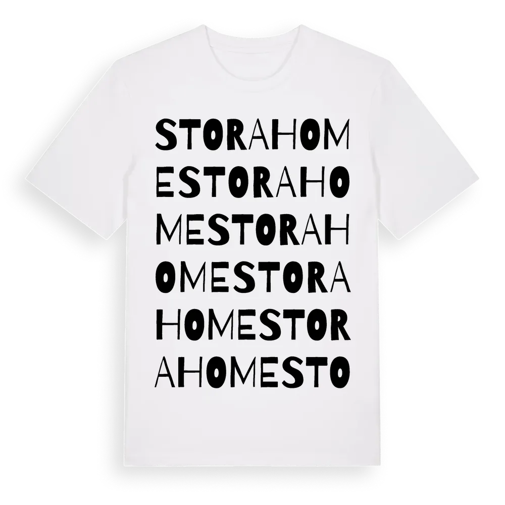Stora Home ordlek t-shirt är inspirerad av Stora Home i Gotlands län, Sverige. Tröjan är designad för dig som har en speciell koppling till platsen – oavsett om du bor här, har rötterna här eller bara älskar Stora Home.