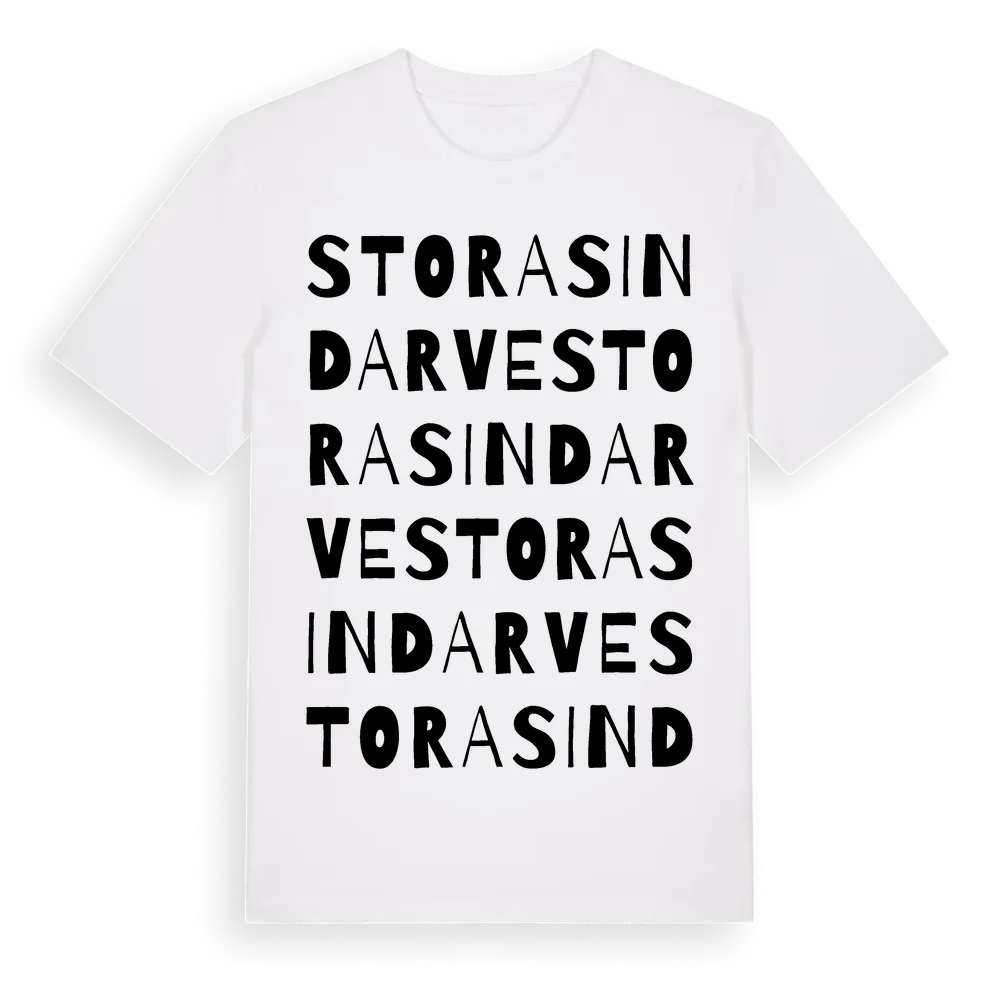 Stora Sindarve ordlek t-shirt är inspirerad av Stora Sindarve i Gotlands län, Sverige. Tröjan är designad för dig som har en speciell koppling till platsen – oavsett om du bor här, har rötterna här eller bara älskar Stora Sindarve.