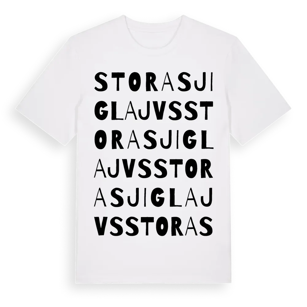 Stora Sjiglajvs ordlek t-shirt är inspirerad av Stora Sjiglajvs i Gotlands län, Sverige. Tröjan är designad för dig som har en speciell koppling till platsen – oavsett om du bor här, har rötterna här eller bara älskar Stora Sjiglajvs.