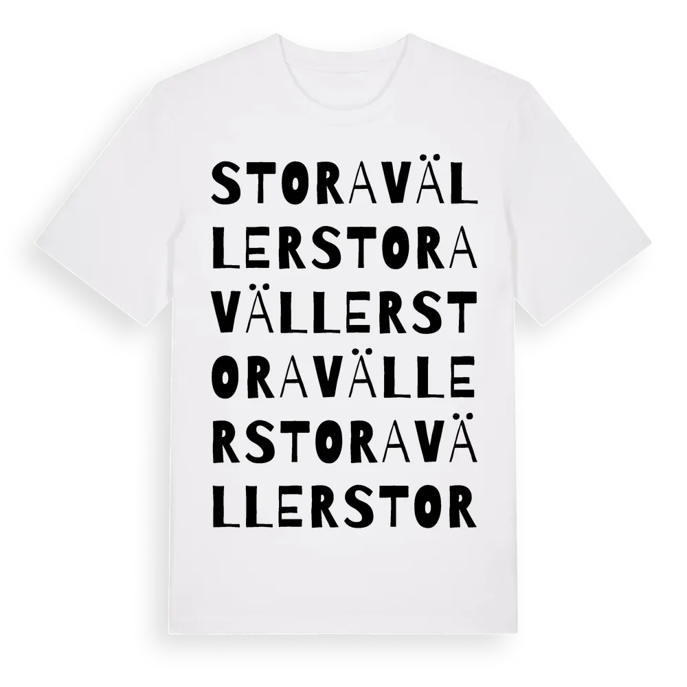 Stora Väller ordlek t-shirt är inspirerad av Stora Väller i Gotlands län, Sverige. Tröjan är designad för dig som har en speciell koppling till platsen – oavsett om du bor här, har rötterna här eller bara älskar Stora Väller.