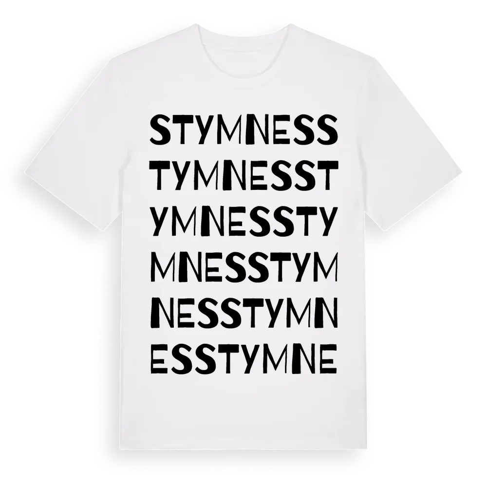 Stymnes ordlek t-shirt är inspirerad av Stymnes i Gotlands län, Sverige. Tröjan är designad för dig som har en speciell koppling till platsen – oavsett om du bor här, har rötterna här eller bara älskar Stymnes.