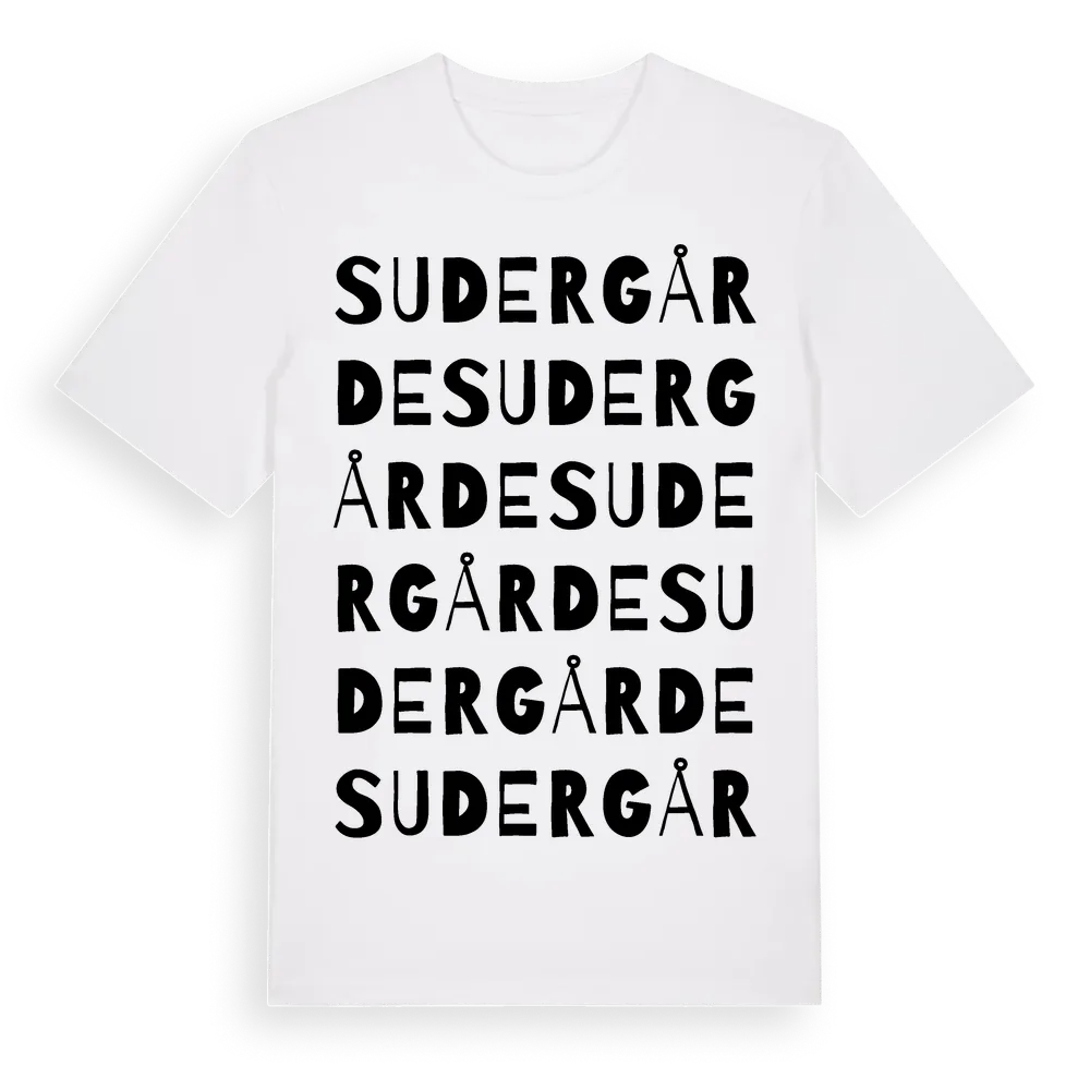 Sudergårde ordlek t-shirt är inspirerad av Sudergårde i Gotlands län, Sverige. Tröjan är designad för dig som har en speciell koppling till platsen – oavsett om du bor här, har rötterna här eller bara älskar Sudergårde.