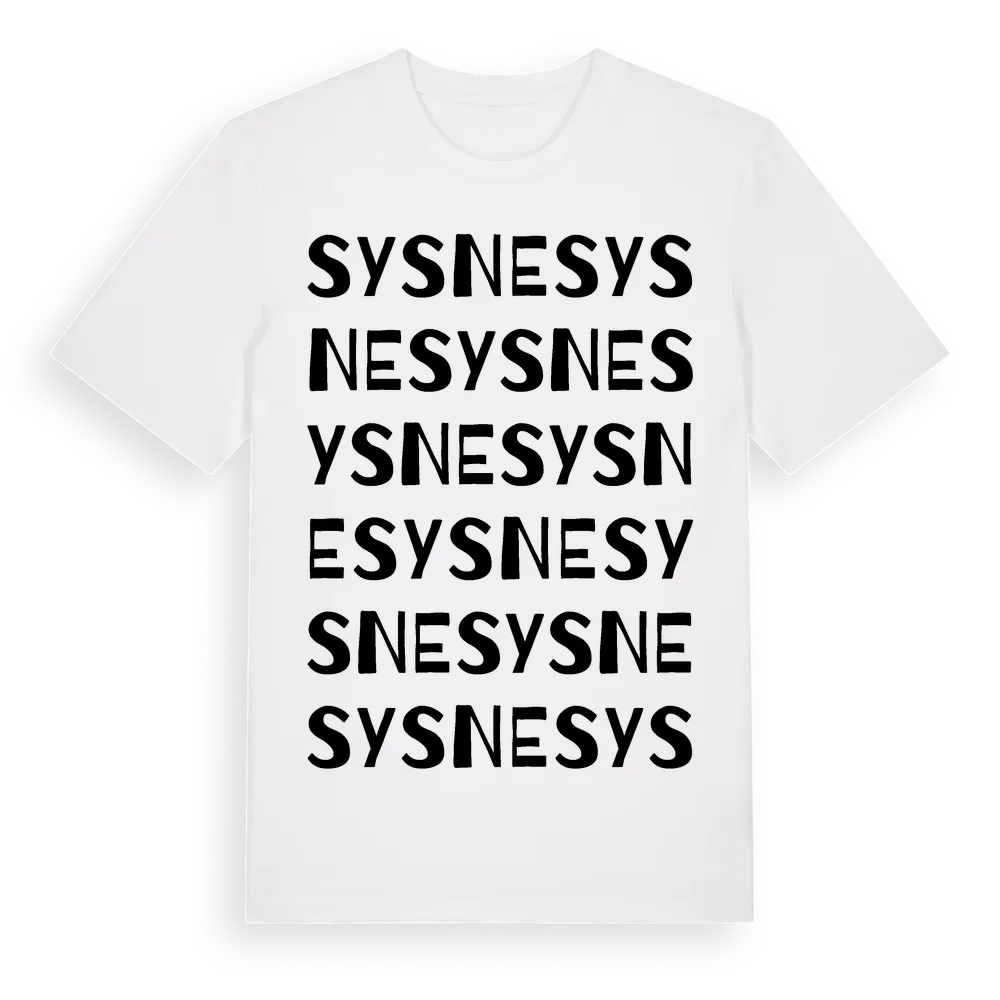 En ordlek byggd på Sysnes namn. Subtilt och klurig – ett motiv som bara de som verkligen känner platsen fullt ut förstår. Premium bomull, unisex – från Sysne i Gotlands län.