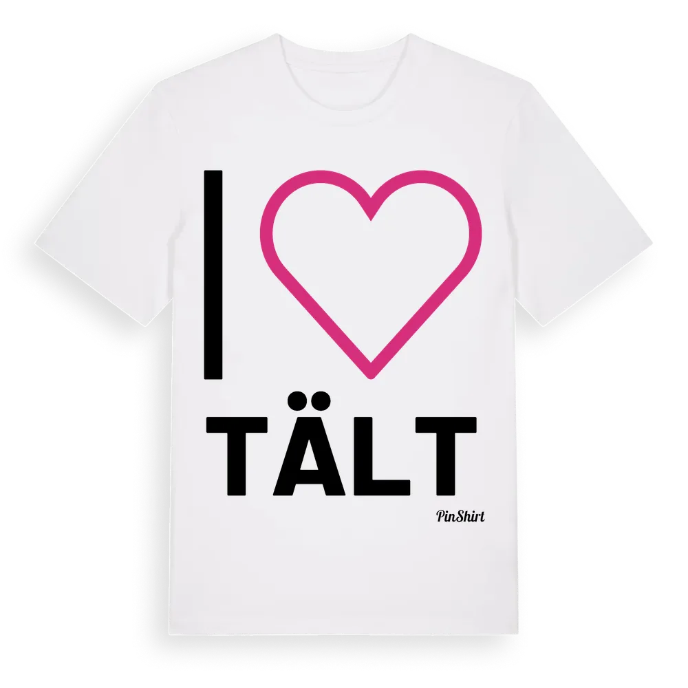 Jag älskar Tält t-shirt stort tryck är inspirerad av Tält i Gotlands län, Sverige. Tröjan är designad för dig som har en speciell koppling till platsen – oavsett om du bor här, har rötterna här eller bara älskar Tält.