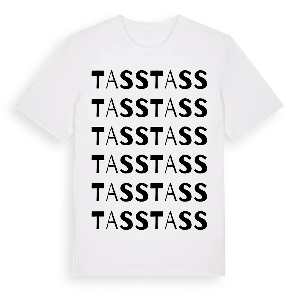 En ordlek byggd på Tasss namn. Subtilt och klurig – ett motiv som bara de som verkligen känner platsen fullt ut förstår. Premium bomull, unisex – från Tass i Gotlands län.