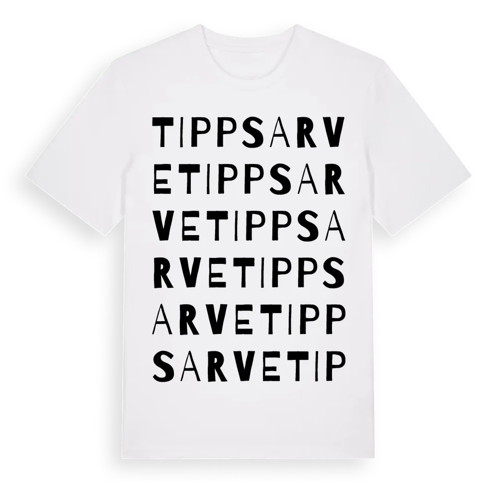 Tippsarve ordlek t-shirt är inspirerad av Tippsarve i Gotlands län, Sverige. Tröjan är designad för dig som har en speciell koppling till platsen – oavsett om du bor här, har rötterna här eller bara älskar Tippsarve.