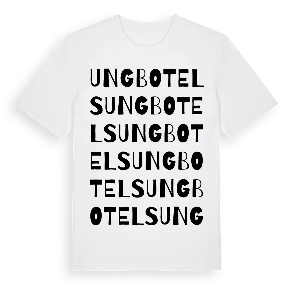 Ungbotels ordlek t-shirt är inspirerad av Ungbotels i Gotlands län, Sverige. Tröjan är designad för dig som har en speciell koppling till platsen – oavsett om du bor här, har rötterna här eller bara älskar Ungbotels.