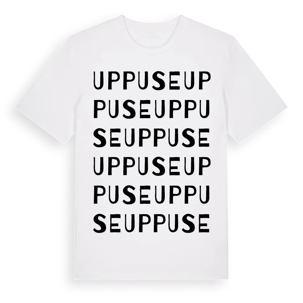 En ordlek byggd på Uppuses namn. Subtilt och klurig – ett motiv som bara de som verkligen känner platsen fullt ut förstår. Premium bomull, unisex – från Uppuse i Gotlands län.