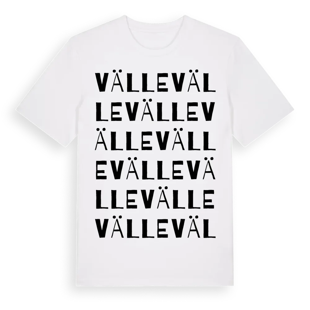 Välle ordlek t-shirt är inspirerad av Välle i Gotlands län, Sverige. Tröjan är designad för dig som har en speciell koppling till platsen – oavsett om du bor här, har rötterna här eller bara älskar Välle.