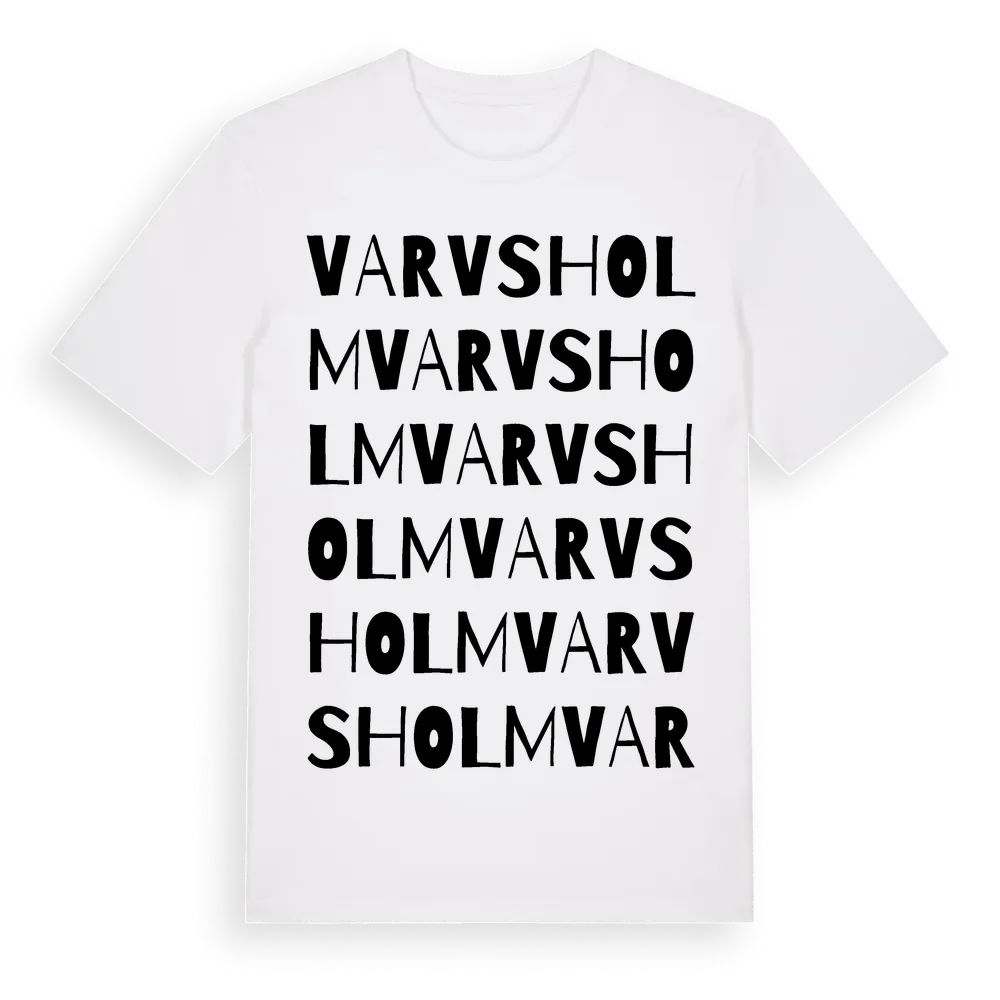 Varvsholm ordlek t-shirt är inspirerad av Varvsholm i Gotlands län, Sverige. Tröjan är designad för dig som har en speciell koppling till platsen – oavsett om du bor här, har rötterna här eller bara älskar Varvsholm.